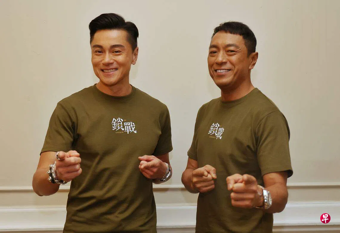 电影《锁战》两男主角姜皓文和黃浩然,连同导演吴培吉17日来新加坡为电影宣传。