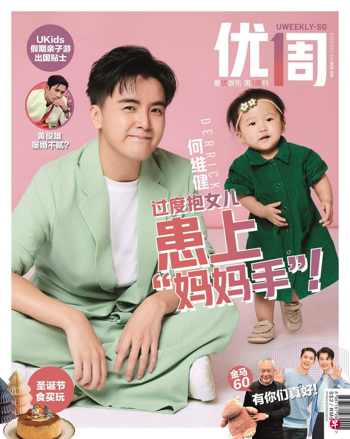 (本地讯)第939期《优1周》星期五(12月1日)出街,封面人物是出道18年的新加坡歌手何维健。何维健2005年在《绝对SuperStar》拿下季军之后,努力成为唱跳兼创作型歌手,他三年前多了人夫身份,现在更成为14个月大爱女Nori(昵称)的“女儿控奶爸”,只要是女儿想做的事,他几乎都会say yes(同意),还因过度抱女儿,患上“妈妈手”!