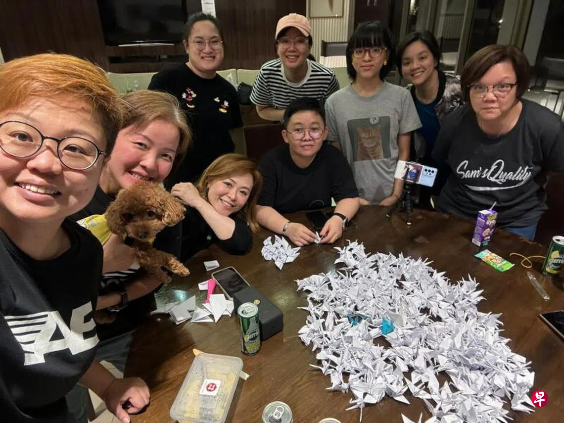 官爱玲说,她除了找来比较相熟的粉丝一起折之外,也在新加坡的梅艳芳国际歌迷会官方脸书召集大家一起折,获得粉丝的热烈支持,共折了千多只纸鹤,再由她带去香港。