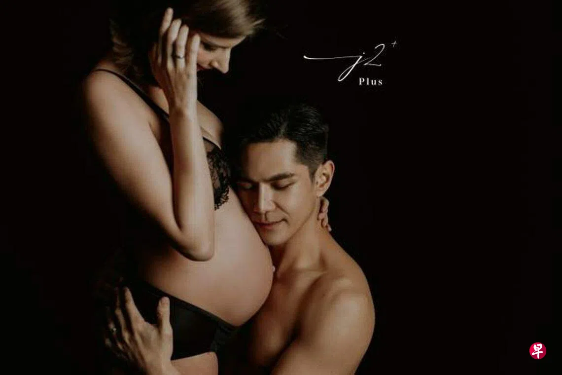 戴祖雄则单穿一件黑色内裤入镜。在拍摄过程中,夫妻俩除了一起抚摸着孕肚,戴祖雄还亲吻、轻贴着佳娜的巨肚,看得出非常期待宝宝的到来。
