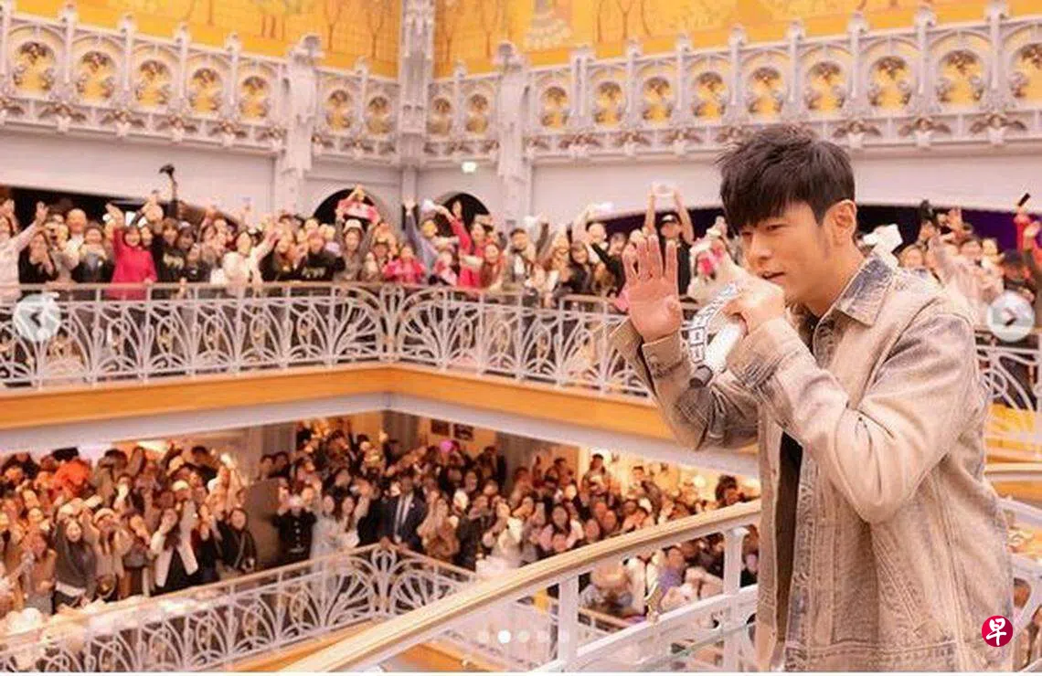 (台北讯)周杰伦最近到巴黎举行演唱会,并在演唱会结束后留在当地举办粉丝见面会,吸引人潮挤爆百货各楼层。