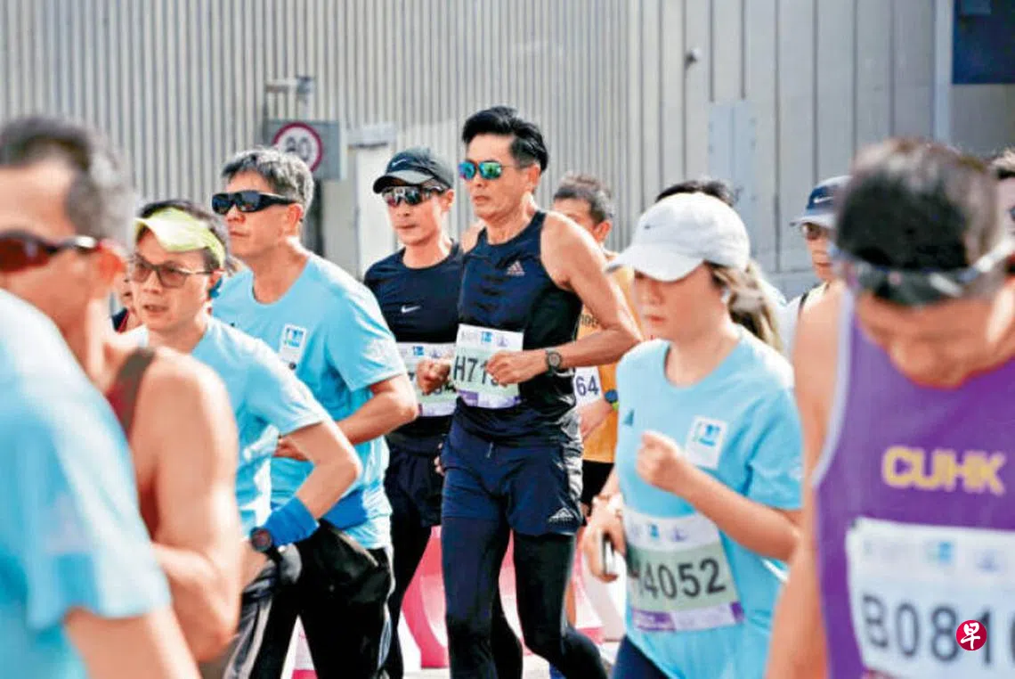 由于发哥今年比赛成绩比预期慢了四分钟,脸上露出无奈神情说 :“回家要被老婆罚400港元(约68新元)。”