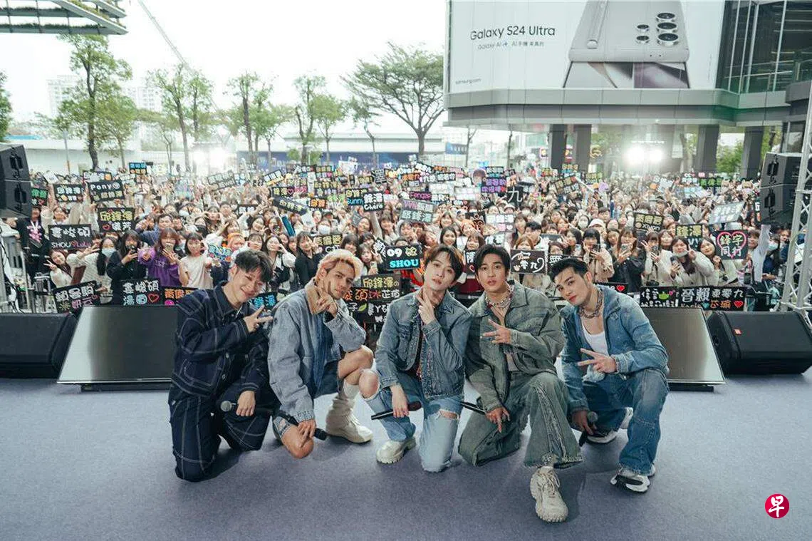 (综合讯)由新加坡歌手邱锋泽、台湾歌手陈零九、黄伟晋、娄峻硕及赖晏驹(小赖)组成的人气男团五坚情,28日在台南南纺购物中心举办签唱会,现场涌入近5000名粉丝。