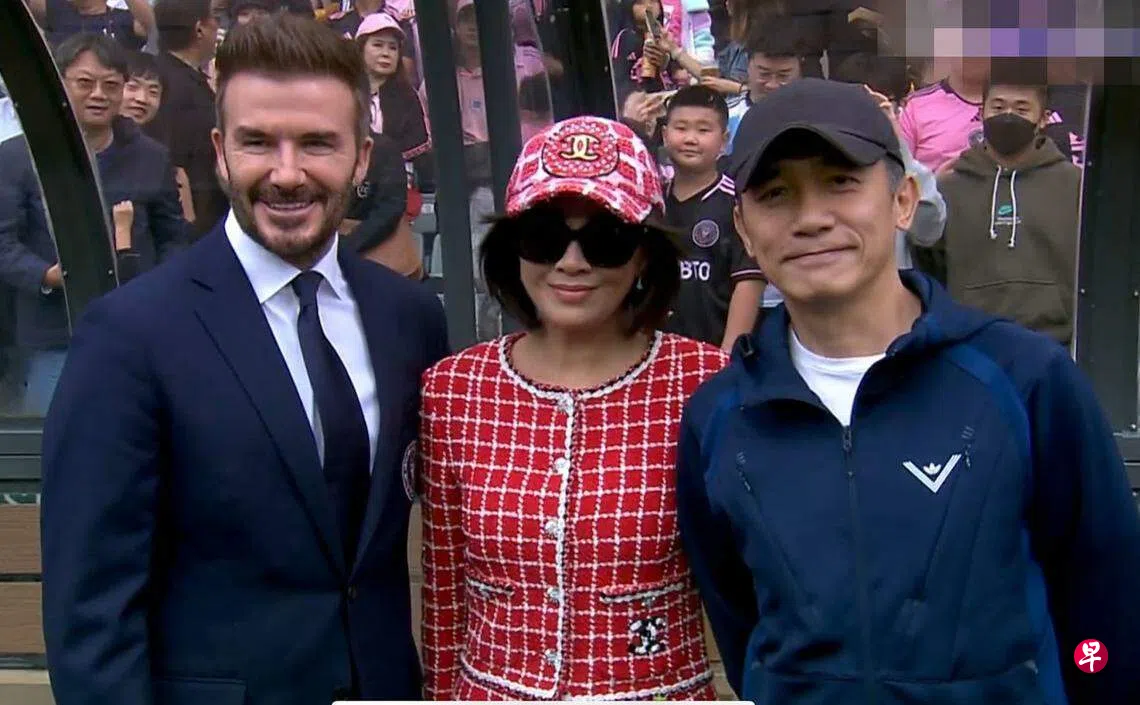 梁朝伟与刘嘉玲进场期间,有大批观众都趁机拍照及尖叫拍掌。两人与贝克汉姆寒暄了几句,伟仔更与这位万人迷球星合照,生性害羞的梁朝伟也露出了腼腆笑容,非常可爱。
