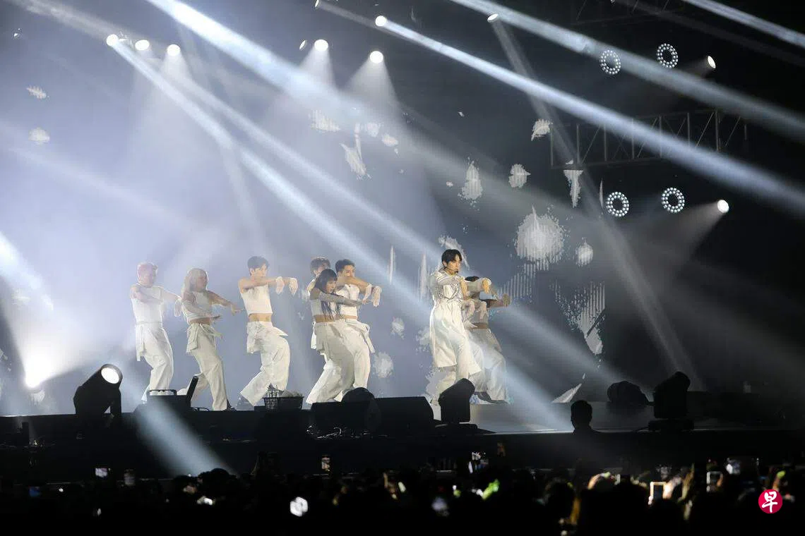 他也不忘为久等多时的粉丝们献上一些惊喜,送上三句新加坡式英语拉近和狮城粉丝之间的距离。第一句就是“Power sia!”话末,伯贤腼腆地问大家是否说对了,粉丝们当然以热烈的呼声为他打气。接着,他再挑战第二句:“我们的eris(粉丝名称),chiobu!(美女)!”同样反应热烈。最后他说了句:“Alamak!”加上拍额头的动作,不少粉丝将其表情传至社媒并大赞可爱。