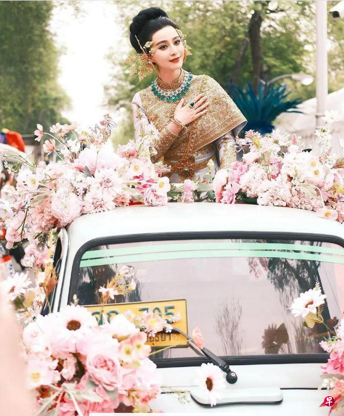 同天,“范爷”也坐上花车出巡,坐在花车上的她虽然尽显霸气,又摆出不少甫士,“泰味”十足,“范爷”的打扮也令人眼前一亮,不过,却有网民发现她坐的花车太简约,不够气派,更出现漏油情况,相比起其他泰国女艺人的花车较为寒酸,有网民于是认为根本配不上她的高贵打扮。