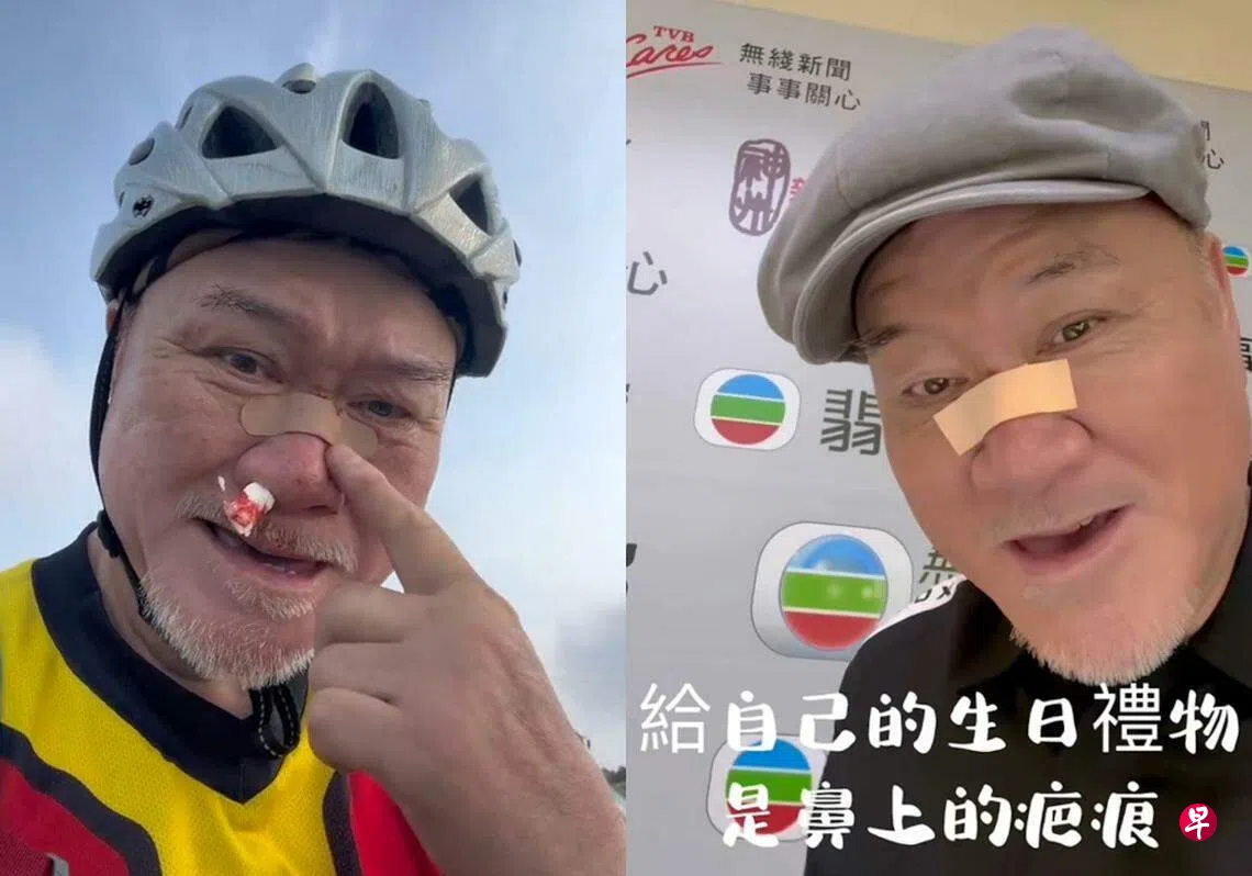 (香港讯)郑恕峰入行48年,有无线(TVB)“御用恶人”之称,他平时喜欢骑脚踏车,却在上星期70岁生日之前骑车发生意外,跌伤鼻子。