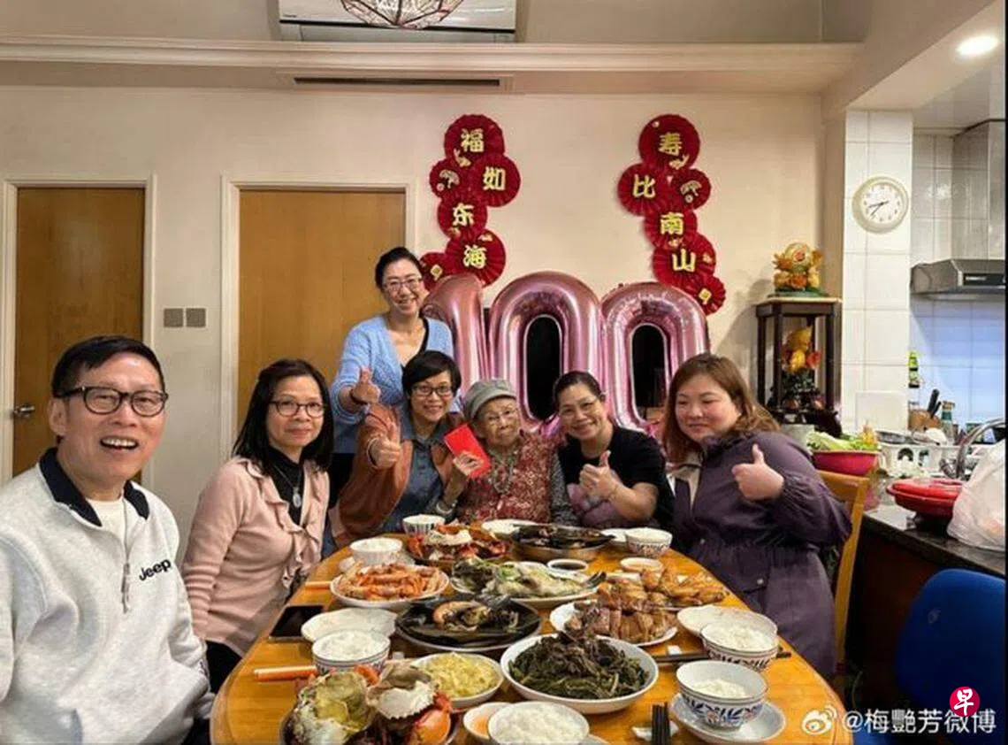 (香港讯)梅艳芳母亲梅覃美金上个月迎来100岁大寿,港媒日前曝光现场照片。