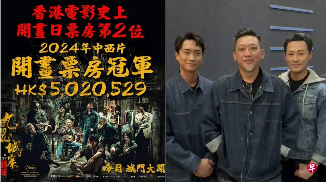 由新出炉香港电影金像奖最佳导演郑保瑞执导的动作电影《九龙城寨之围城》5月1日在中、港两地同步上映,香港首日开画票房极速冲破500万港元(约87万新元),打破多项纪录,成为2024年中西片单日开画票房冠军。