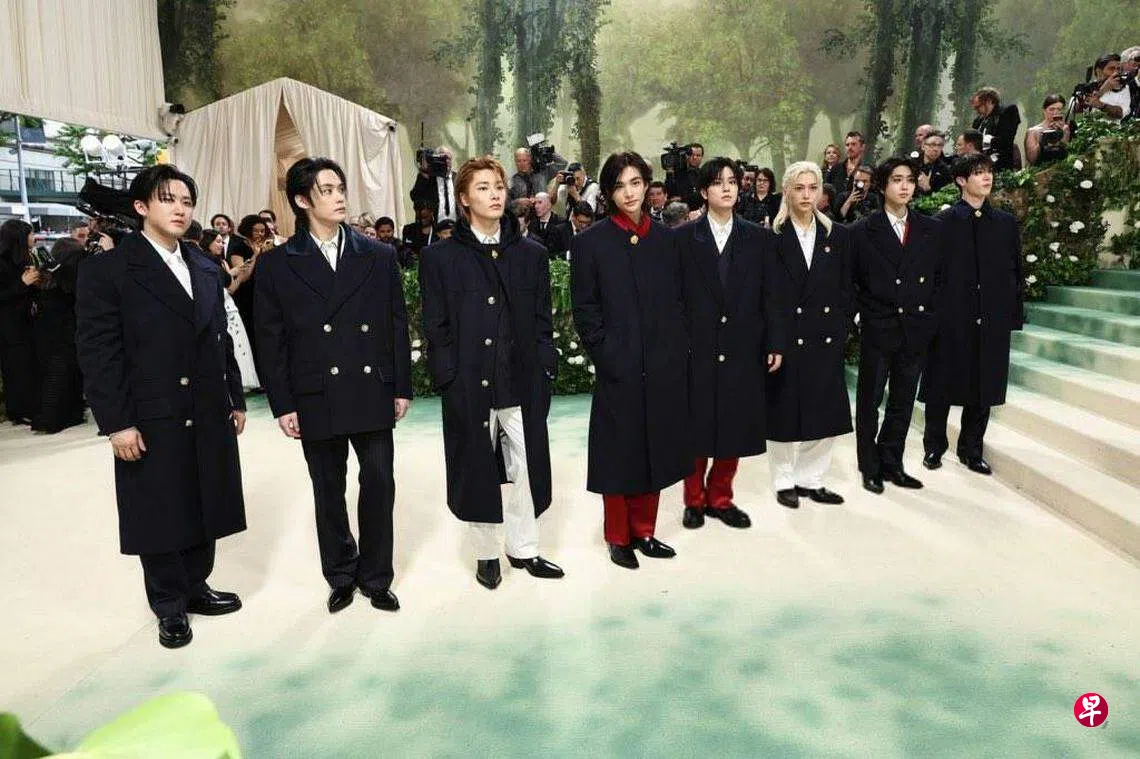Stray Kids为JYP娱乐公司旗下的男团,去年11月以主打曲“LALALALA”走红,该曲不仅进入告示牌(Billboard) 排行榜前100名,MV更有破亿观看人数,国际知名度迅速被打开,声势深受看好。他们今年首度以“Tommy Hilfiger”的品牌大使受邀参加“Met Gala”。