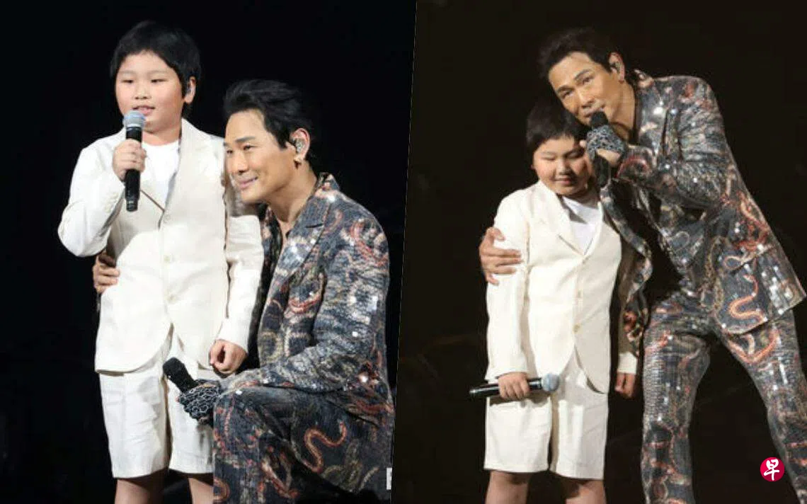 (台北讯)杜德伟18日在台北开唱,也是他暌违30年在台北举行的演唱会, 正好碰上他父亲逝世13周年,于是特别安排自己与爸爸阴阳相隔合唱“Wondferful world”,随后七岁的宝贝儿子AJ也惊喜登台献唱,“祖孙三代”同台的画面相当感人。