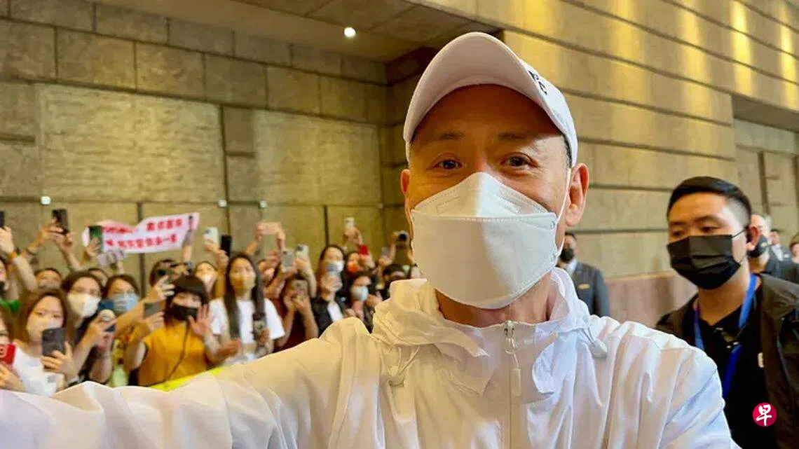 下午3点,张学友一身白色帽子、口罩、风衣运动装扮步出下榻酒店,外头近100名粉丝从早上就前来等候,目睹本尊风采,张学友十分宠粉,从头走到尾逐一的握手、击拳,礼物也拿满收好,绕了一圈才上保母车,宠粉无极限。