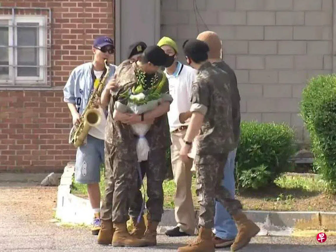 (首尔讯)韩国天团防弹少年团BTS大哥Jin金硕珍6月12日正式退伍,除SUGA以外的成员RM、V、智旻、柾国、j-hope都现身军营外迎接,队长RM还吹着萨克斯風欢庆Jin退伍,大家脸上都高挂笑容。