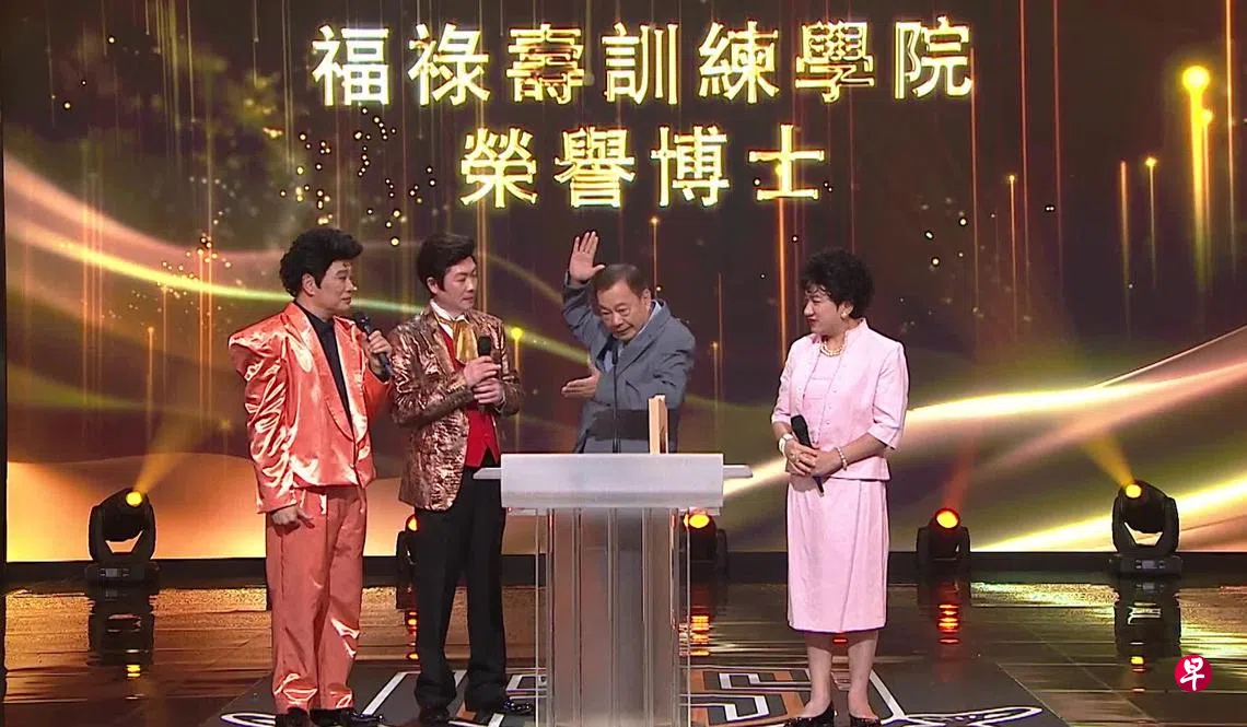 (综合讯)无线综艺节目《福禄寿训练学院》向资深艺人廖伟雄(阿灿)致敬,王祖蓝、李思捷以他不同的经典造型亮相,更送上“福禄寿训练学院荣誉博士”荣衔。