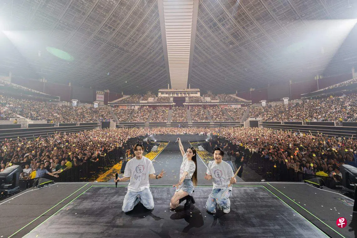 台湾乐团告五人6月22日在新加坡室内体育馆举行“宇宙的有趣”演唱会。此次是他们组团七年的首个巡演。听过不少他们的歌曲,但并非“哈瓜”(粉丝昵称),不熟悉三个成员犬青、云安和谦哥(林哲谦)的个性和现场演出能力,带着好奇心到场一探“告五人宇宙”有多有趣。