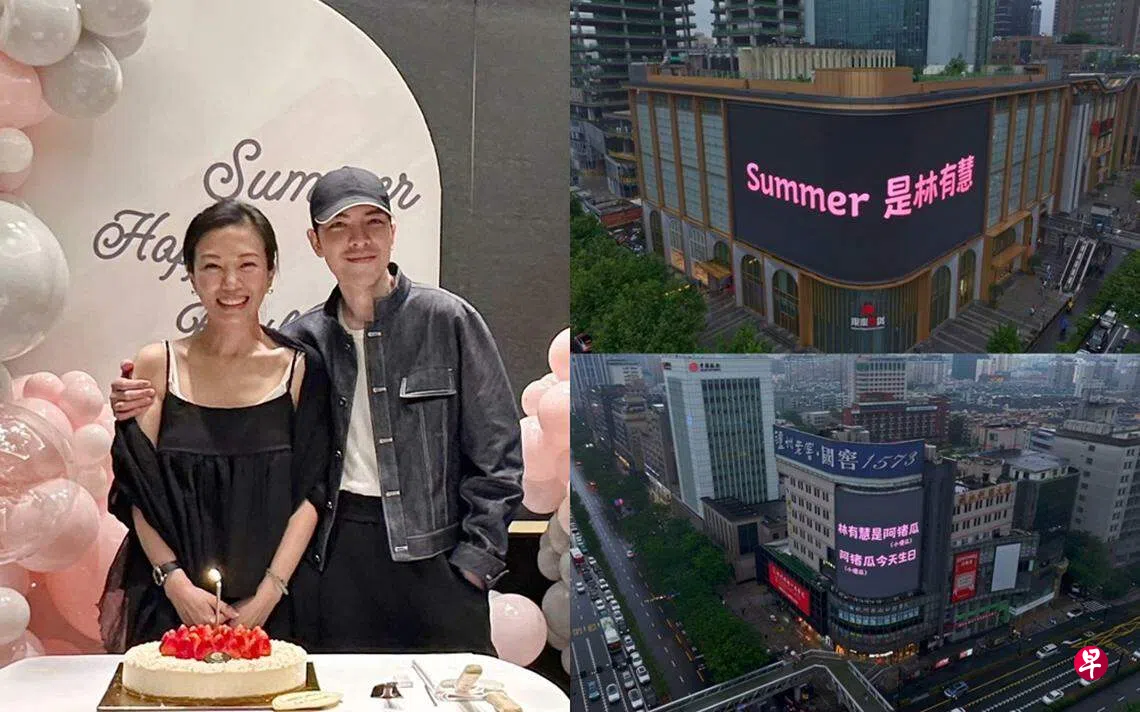 萧敬腾包下杭州闹区好几栋大楼外的六块大荧幕示爱。荧幕上写着:“六月是夏天,夏天是Summer,Summer是林有慧,林有慧是阿猪瓜(老婆的暱称),阿猪瓜今天生日,我要跟她说:你永远是我的阿猪瓜,我们永远‘卡彡’(Summer发明的字,意指抱很紧)在一起,生日快乐,你永远的爱宝。”