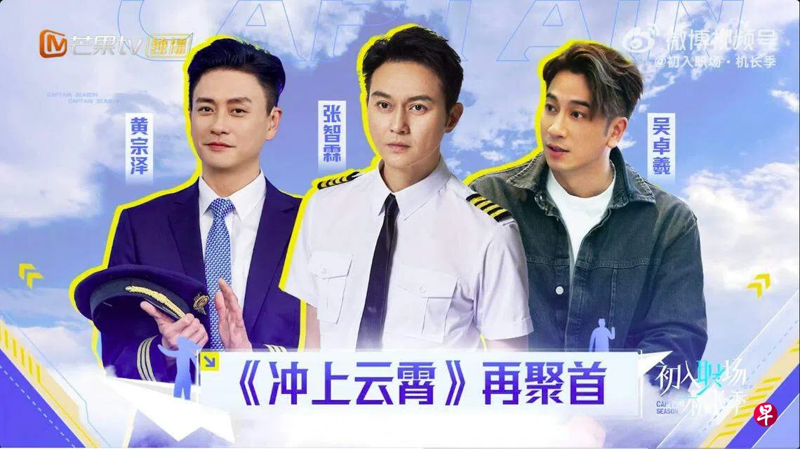 (长沙讯)中国芒果TV新综艺节目《初入职场机长季》,被视为港剧《冲上云霄》的真人秀,节目组邀请到剧集原班人马加入节目,包括张智霖、黄宗泽及吴卓羲。近日宣传片中见到他们穿上机师制服,相当有型。