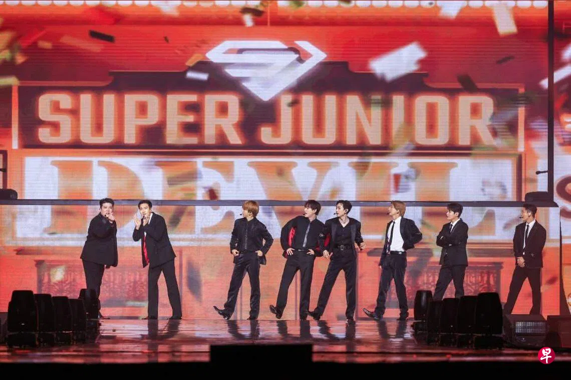 Super Junior的八位成员:神童(Shindong)、圭贤(Kyuhyun)、艺声(Yesung)、利特(Leeteuk)、厉旭(Ryeowook)、东海(Donghae)、始源(Siwon)和银赫(Eunhyuk)今年开启亚洲巡演“SUPER SHOW SPIN-OFF: Halftime”,第三站在14日(星期日)傍晚来到新加坡室内体育馆。