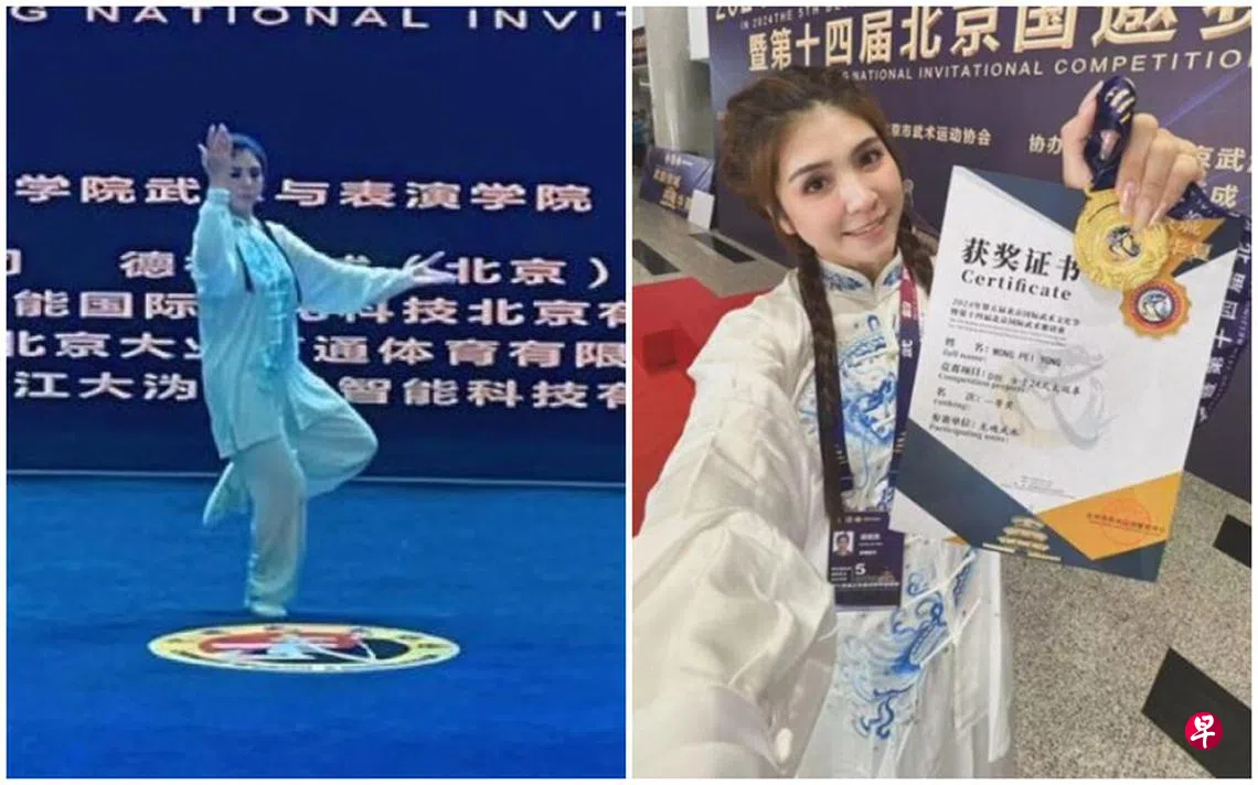 艺人黄怡媗上星期一(7月8日)前往北京参加北京国际武术邀请赛,并获得“女子24式太极拳”一等奖,她说自己崇拜杨紫琼,希望有一天也能做打女!