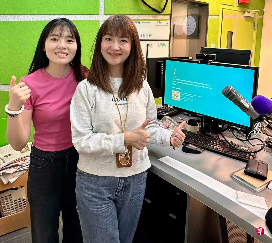 受全球电脑系统大宕机影响,电台UFM100.3下午班《一搭子 下午茶》(周一至五下午1时到4时)DJ罗克敏星期五(7月19日)值班时遇系统故障,下午1时26分发现电脑系统开始出状况。她一开始不停在空中讲话撑场,后来灵机一动开放听众点歌,接连清唱《小幸运》《细水长流》《迷迭香》《几分之几》《告白气球》等五六首歌。