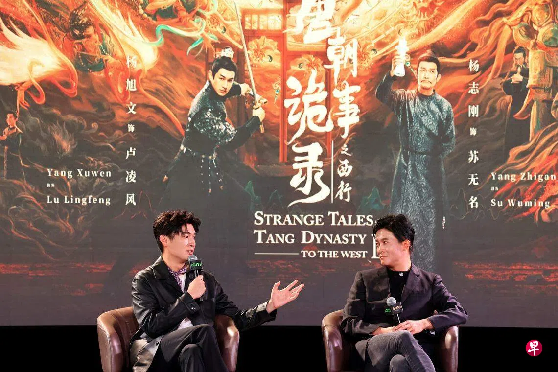 中国志怪探案剧《唐朝诡事录之西行》(简称《西行》)7月18日在爱奇艺上线,前几天在爱奇艺热度直破万,目前在豆瓣评分8.2,成绩亮眼。两位男主角杨志刚、杨旭文星期二(7月30日)现身滨海湾金沙会议展览中心为剧宣传,现场有来自新加坡、马来西亚、台湾和香港的媒体。记者会上,“双杨”有求必应,除了即兴秀舞蹈、扎马步和撂新加坡式英语,还畅谈了拍《西行》的花絮与趣事点滴。