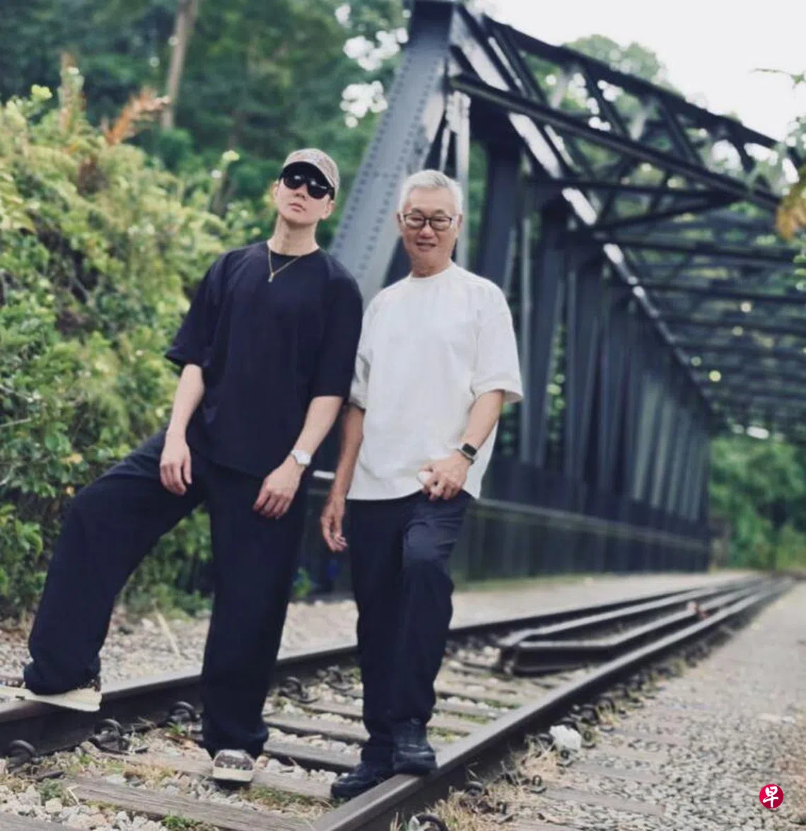 (本地讯)43岁金曲歌王林俊杰星期二(7月30日)透过脸书晒出与父亲的合照,只见他身穿潮T加上宽裤,全黑休闲搭配加上卡其色帽子、墨镜。林爸爸则是简约白色上衣深色裤穿搭,两人一黑一白组合,站在铁轨上拍下父子帅气合照。