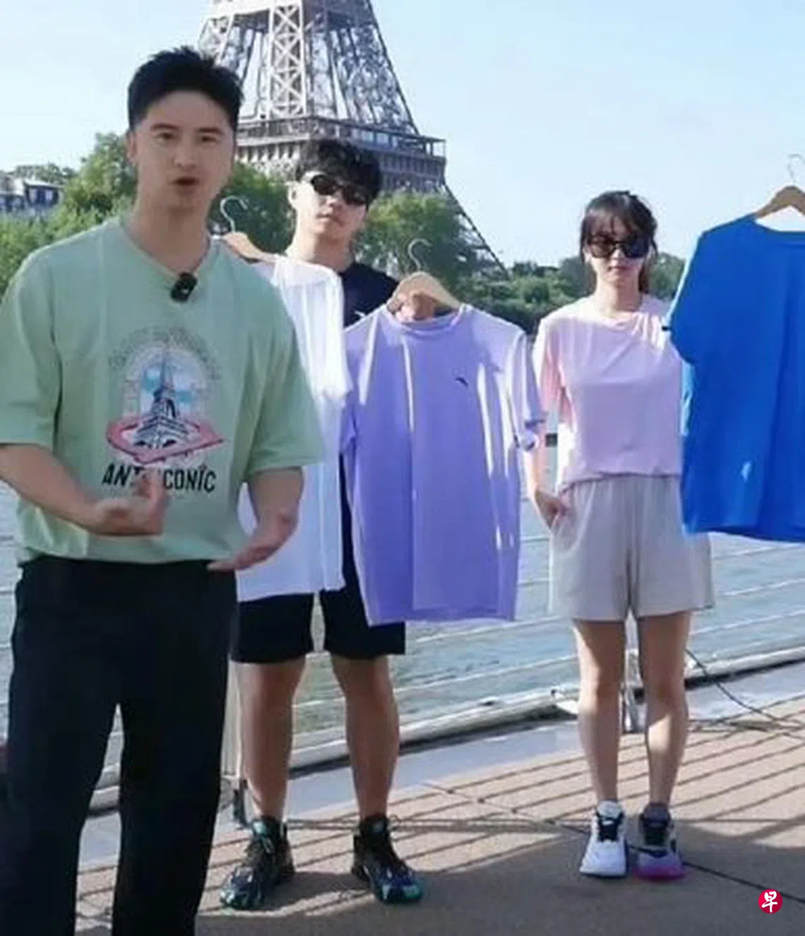 田亮拥有帅气高颜值,从运动员转型成为艺人,引起不少话题。他与团队到巴黎开直播卖衣服,站在镜头前介绍商品,身后一对年轻男女戴墨镜举着T恤展示。