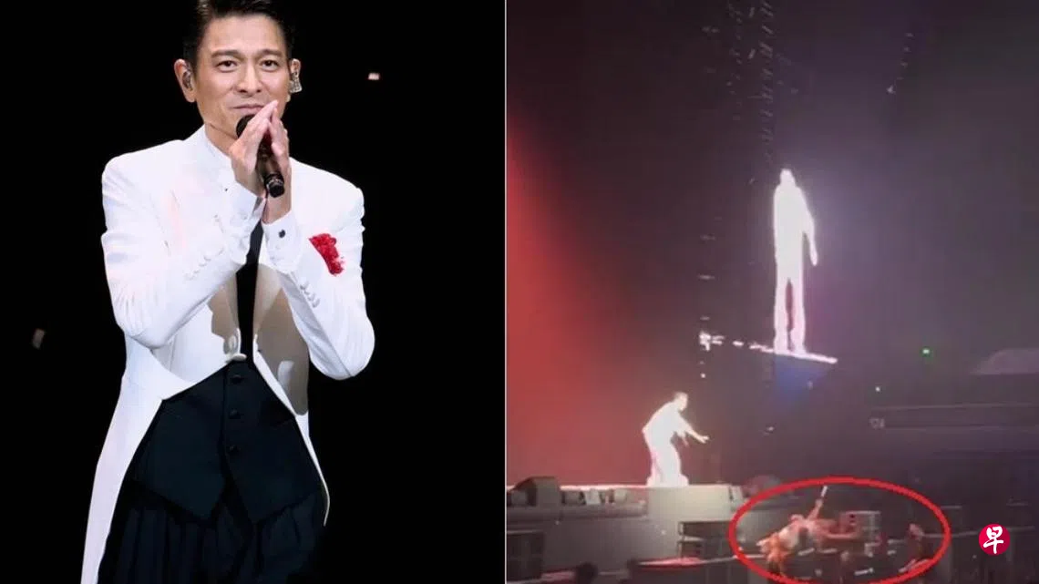 由于相当担心粉丝,刘德华全程盯紧保全人员,立即叫人开灯,并向台前上万粉丝说完“我去看看”之后,一度消失舞台,确认对方没事才回到舞台。