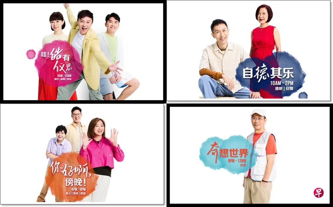 除了皓皓加入全新早班,中午班也换DJ当家,前半段由王德明独挑大梁,每周邀请中西医上节目分享医疗保健知识,还有理财、小贩美食背后故事等精彩节目。中午班下半场,已投入早报新工作的林安娜回归,与王德明一起主持“明人说安话”。傍晚班由洪菁云、李玮玮和梁居磊主持,刘杰奇独掌晚班。