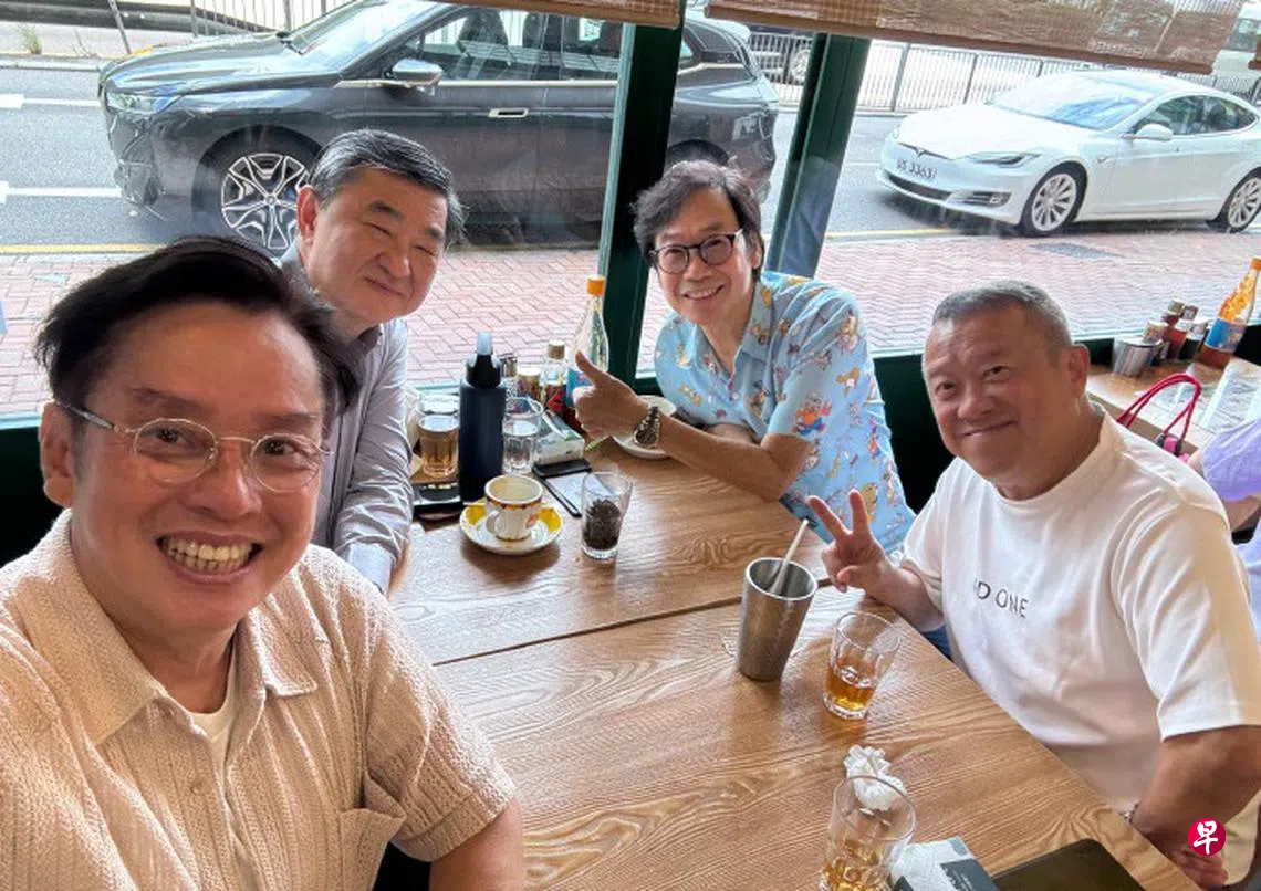谭咏麟相约了好友曾志伟、彭健新和一名男性朋友在湾仔汉发茶餐厅开心享用生日餐。 (取自网络)