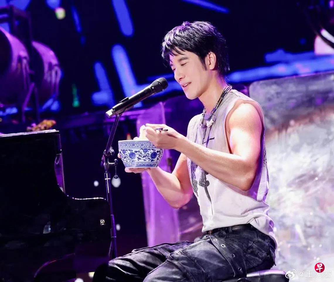 其间他演绎歌曲《南京南京》,唱到“点了一碗热呼呼的皮肚面”时,竟然有工作人员为他端来一碗皮肚面,。满身大汗的他说:“等一下,等一下,唱到就来了。”并笑称:“把美食都写进歌词是为了吃!”