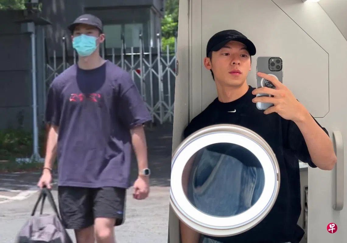 (台北讯)33岁的许光汉于8月20日当兵入伍到成功岭进行基础训练,由于受训期间表现良好获荣誉假,提前六小时离开营地放假三天。他9月6日中午12时26分走出营区大门搭上保姆车离开,在场有近10家媒体捕捉画面。