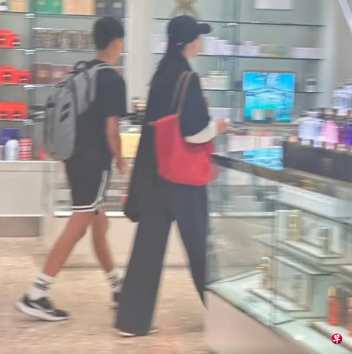 影片可见,一身黑色打扮的梁洛施和李长治现身波士顿一家商场内。