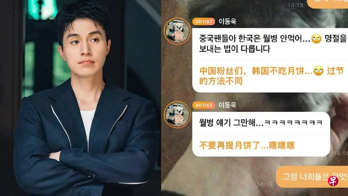 (综合讯)韩国演员李栋旭(Lee Dong-wook)和粉丝群聊的截图在微博疯传而且冲上热搜,截图中他被问到吃月饼了吗?他直率回答:“中国粉丝们,韩国不吃月饼,过节的方法不同。”他在语句中使用了一个看似翻白眼表情符号,引起中国网民不满。