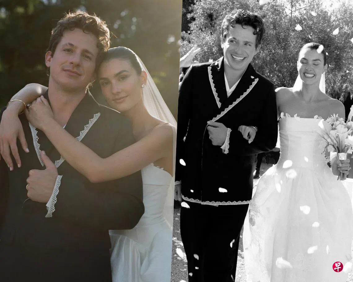 婚礼上,Charlie Puth被身穿白纱的妻子双手环抱,露出幸福笑容,IG贴文一出,点赞数超过133万,数字仍在持续增加中。