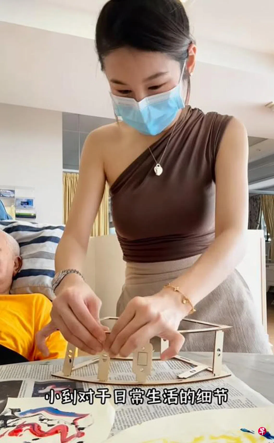 她在IG分享的片段中,能见到她细心为乐龄人士制作灯笼,之后再让他们在灯笼上涂鸦作画,她分享她们是一人负责一名老人,“所以我也做的不多,大概一两个。”