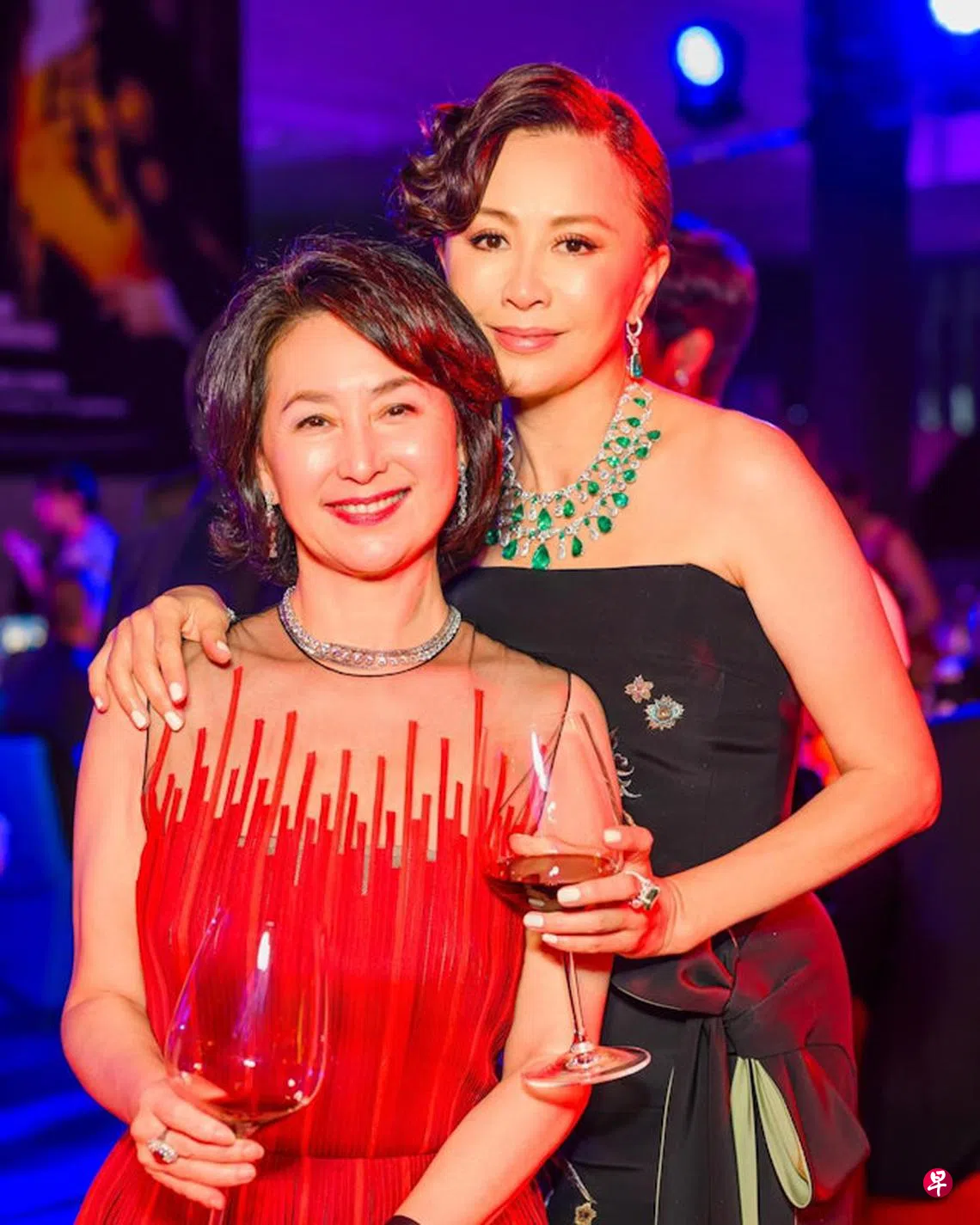 刘嘉玲身穿中式刺绣露肩晚装配衬价值数百万新元的珠宝钻饰亮相,高贵优雅。何超琼则以一身红色薄纱衬刺绣披肩上阵,尽显贵气。刘嘉玲更在社媒晒出跟何超琼的合照,两人微妙的关系引来网民讨论,事缘两人分别是富商许晋亨的旧爱及前妻,同场可说相当罕见,何况同框。