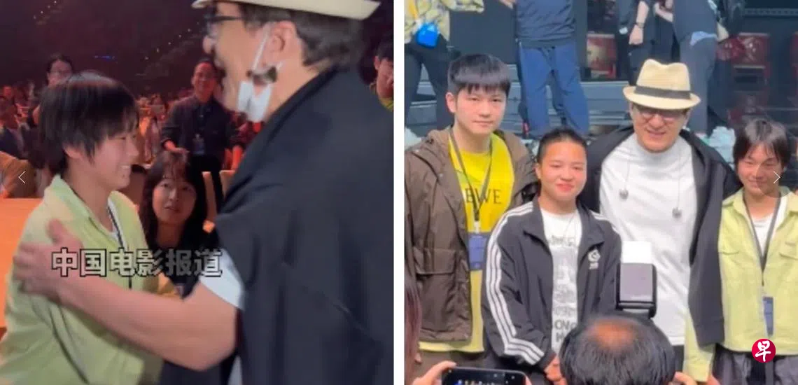 成龙之后又上前跟樊振东说:“为国家升国旗是我一辈子的梦想,我都做不到,你们做到了,太牛了你们,偶像,大偶像。”