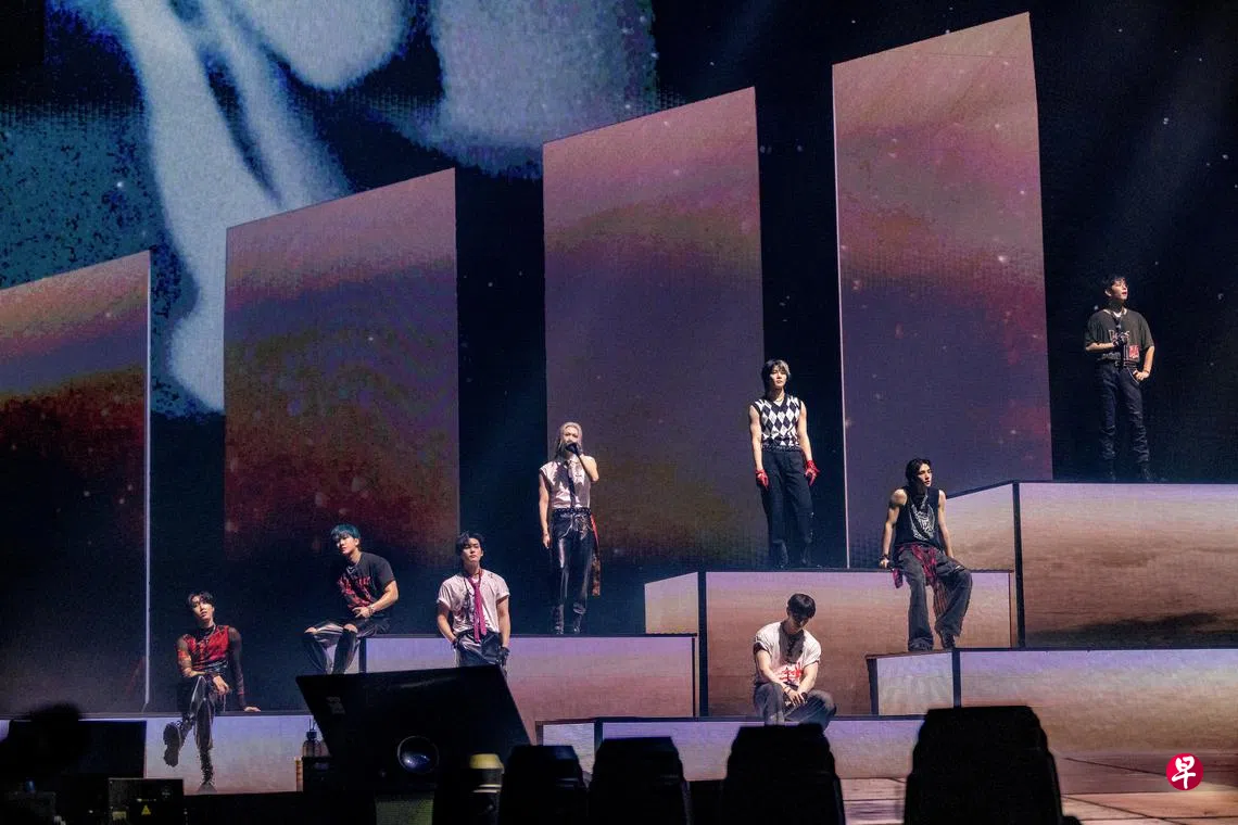 八人组合Stray Kids的成员通过Mnet同名生存实境节目“Stray Kids”筛选而出,是韩国JYP娱乐旗下的男团。2023年2月曾来新开唱的他们,今年升级场地,加大规模,在9月28日晚上于新加坡国家体育场举办“dominate”巡演的海外首站,吸引3万名粉丝入场。Stray Kids也是继BTS(2019年)和Blackpink(2023年)后,第三组在此场地开唱的韩团。