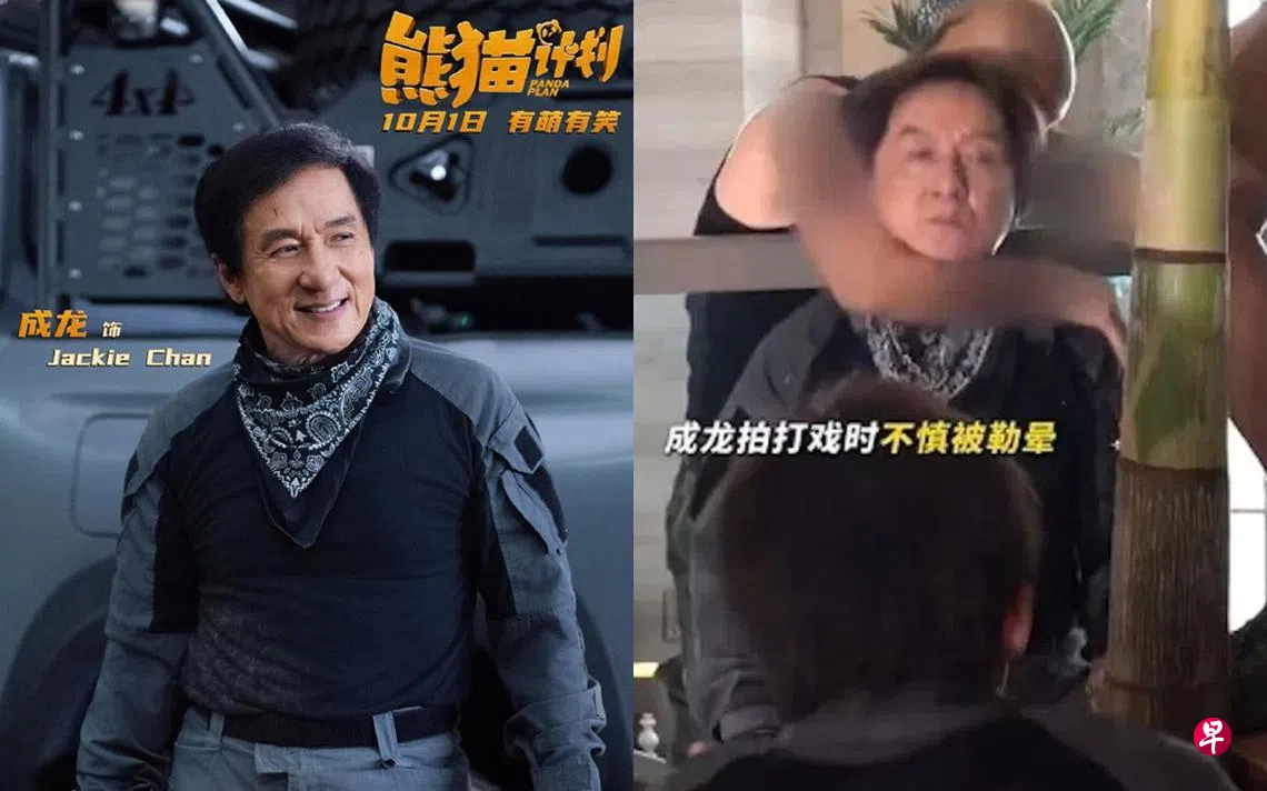 据港媒报导,成龙在即将上映的电影《熊猫计划》中,有场被对手演员从后面勒颈的戏份。从互联网上曝光的拍摄花絮可见,当时成龙被男演员从后勒着颈部,表情相当痛苦,他之后感到不适头晕,工作人员立即上前搀扶。成龙坐下来说话时意识模糊,双眼无神,状态看起来非常不好,甚至站不稳。