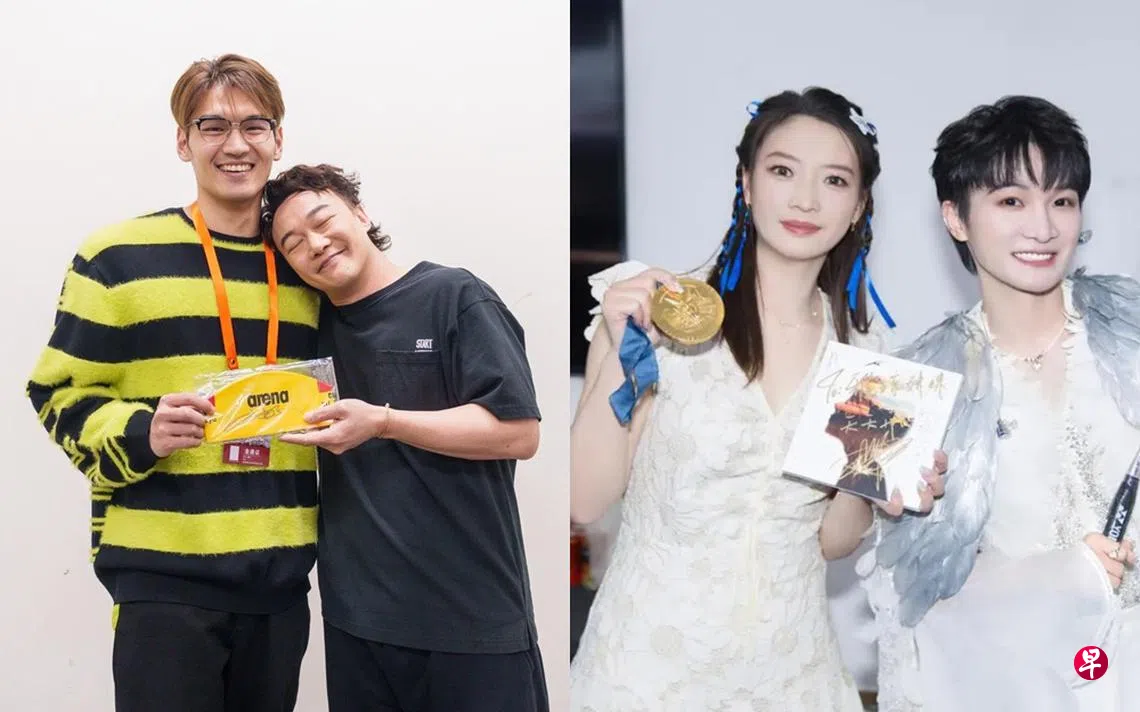 不到一个月,双方就如约碰头了。张雨霏、潘展乐、徐嘉余、王长浩现身陈奕迅杭州演唱会的观众席。陈奕迅在台上与运动员们互动:“你们不用唱,我唱给你听就好。谢谢你们来。”
