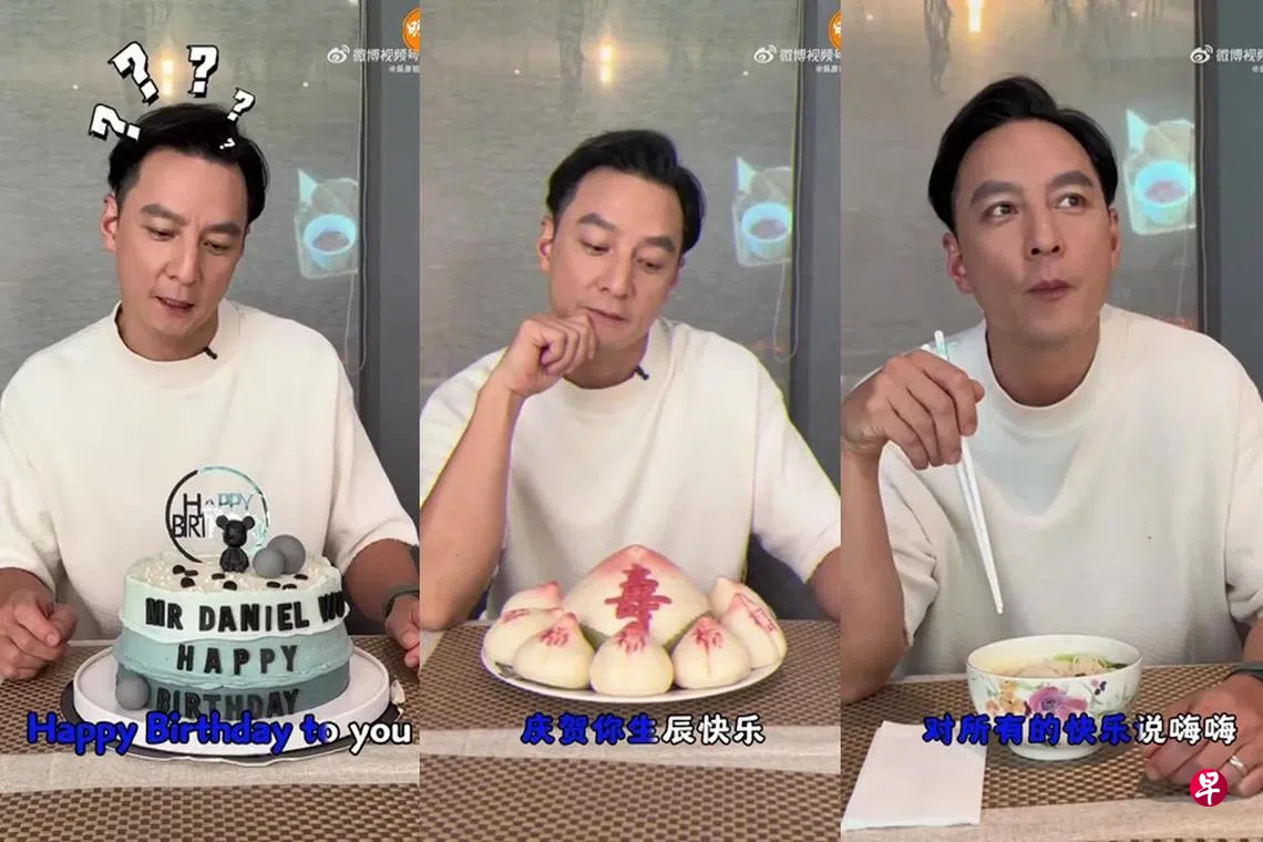 只见他在视频中接连接过生日蛋糕、寿桃包和庆生面,表情也随着转变,从茫然到沉默到开心吃面,似乎觉得“生日吃面”才是最完整的感受。