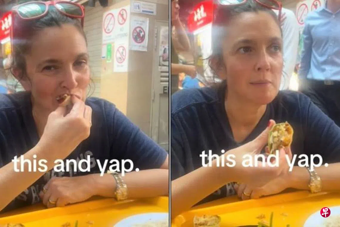 好莱坞女星Drew Barrymore(德鲁巴里莫尔)在麦士威熟食中心(Maxwell Food Centre)吃着薄饼和空心菜的视频,正在新加坡疯传,且已吸引63万人点击。