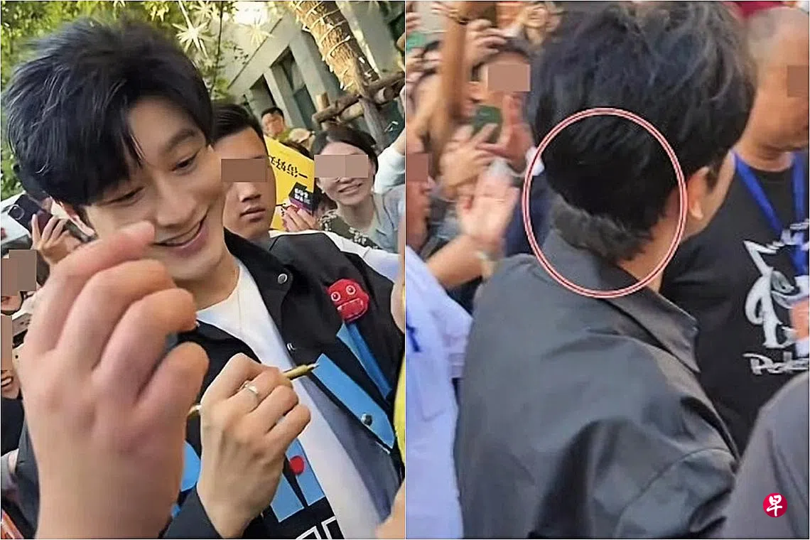 从网上曝光的影片可见,46岁的黄晓明十分亲民,一边微笑一边为大家签名。后来他转过身背对镜头时,有网民发现黄晓明后脑勺的头发有异样。