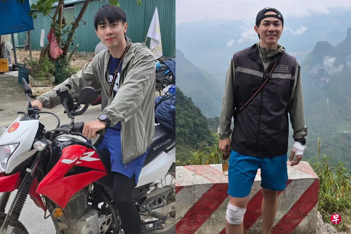 新加坡演员张奕恺到越南展开电单车冒险旅行,不料发生意外,擦伤右脚,皮破血流。