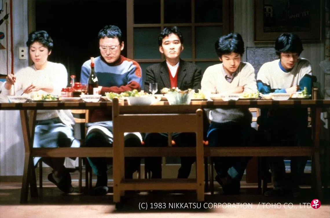 这是日本新浪潮导演森田芳光1983年的横空出世之作《家族游戏》(The Family Game)。40年前还处在经济高速起飞,泡沫尚未被戳破的日本,森田就通过《家》率先戳破所谓的日本传统美满家庭的泡沫。
