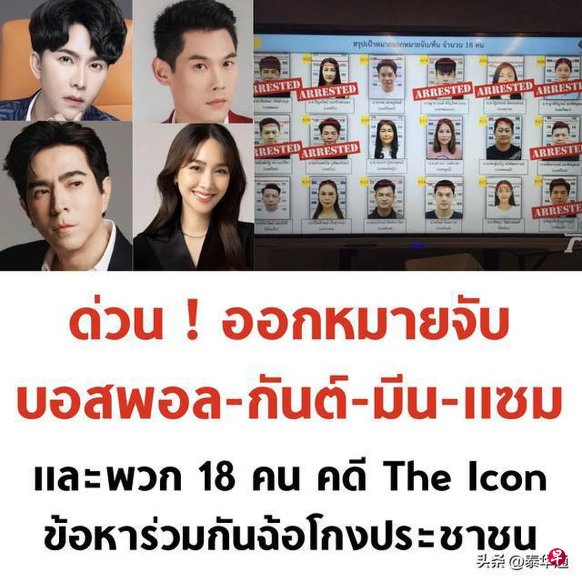 (曼谷讯)明星代言、火爆宣传、夸张广告、哄骗投资——泰国爆出庞大的化妆品和保健品运作公司塌房案,震惊泰国娱乐圈。涉嫌“诈骗带货”和虚假宣传的18个名人接连被捕,他们的豪车豪表及名下资产全被扣留等待最终调查。