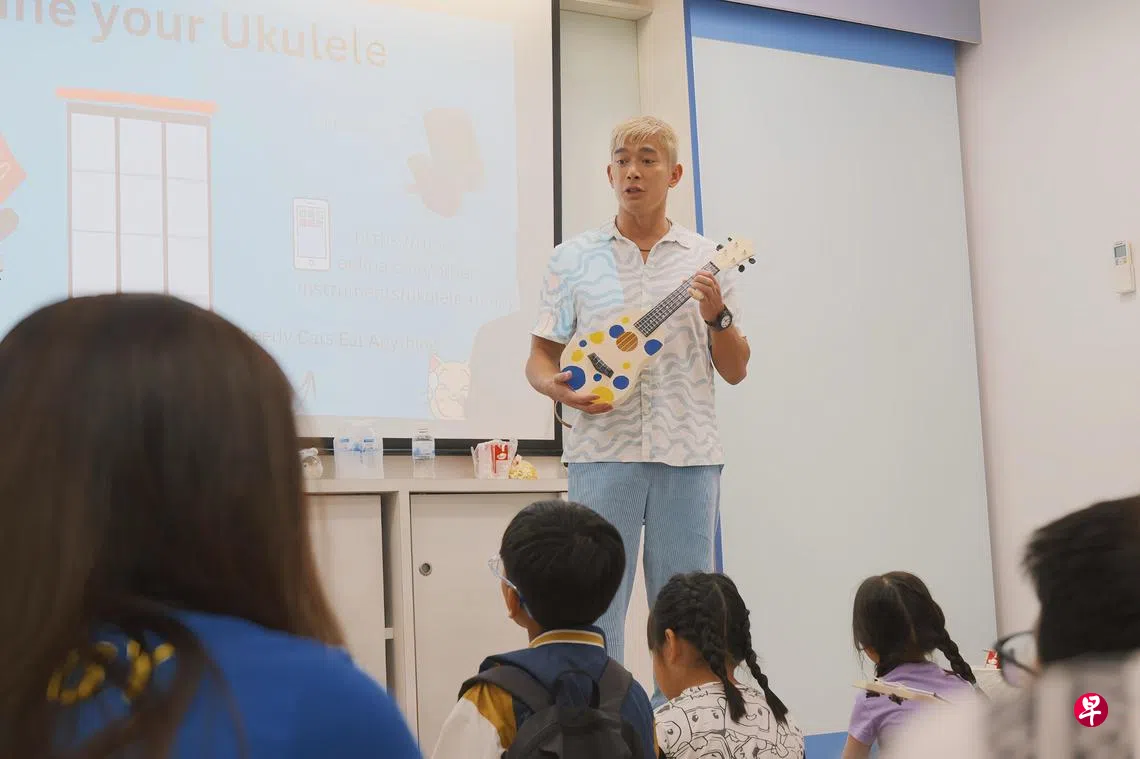 新加坡艺人黄俊雄10月19日与粉丝参与爱合社区服务(Epworth Community Services)的活动,“我们度过了欢乐的星期六,除了彩绘尤克里里(Ukulele),也教孩子们弹奏‘You Are My Sunshine’。重要的是,引导小朋友(他们有些来自弱势家庭,或面对学习上的困难)如何通过玩乐表达自己,通过创意和想象力,去探索他们的潜力。”