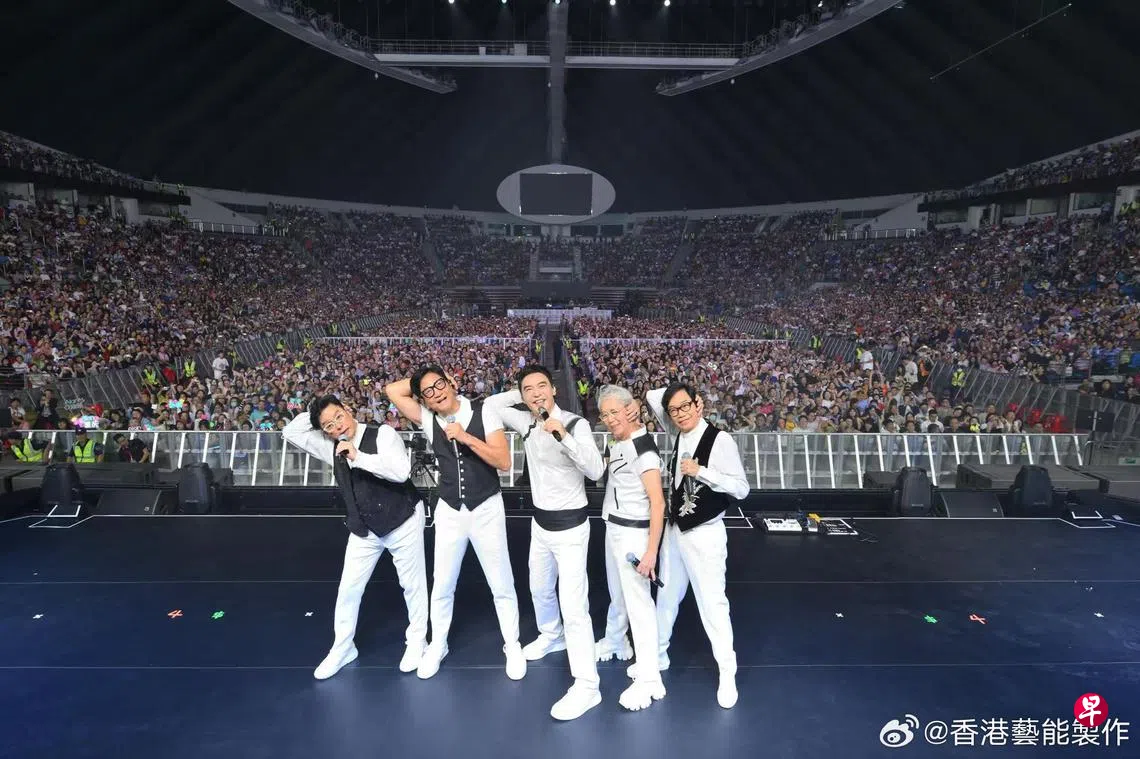 26日的演出中,现年已经71岁的钟镇涛不小心摔倒的视频在社媒上引发热议。透过视频中可看到,钟镇涛表演时边唱边跳着,但因干冰效果让地板变得湿滑,导致他失去平衡跌倒在台上。队友陈友连忙上前扶他,谭咏麟随即上前协助。