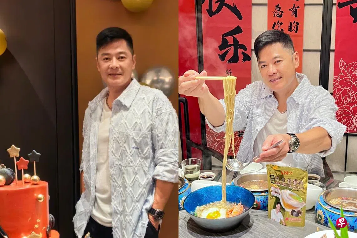 他兴奋地说,很开心能研发出这一款加了两颗黑蒜的养生肉骨茶香料包,并认为对于忙碌的现代人来说,吃得安心和健康最为重要。他在庆生会上让到场的艺人朋友抢先品尝了这款养生汤。他庆生也不忘推销,利用自己推出的肉骨茶香料包作为寿面的汤底,说今后过生日吃寿面,就能很方便的用他这款肉骨茶汤包来烹煮,既美味又养生。